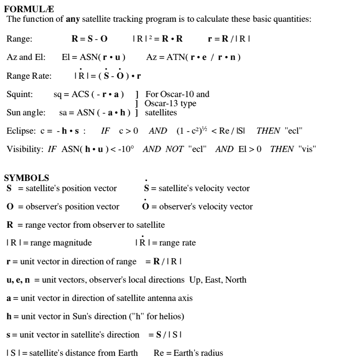 Old hands will recognise the coding style. Additions include the Sun's position, eclipses, visibility, Sun angle, sub-satellite point, mode switching, date algorithms and direct range-rate calculations for doppler shift.
